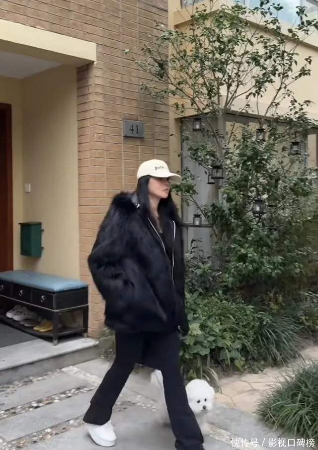 门前放着一双厚厚白色的运动鞋,伊能静穿上后牵着一只小狗出发去工作室了。虽然伊能静出门捂得严严实实,穿着一身黑色衣服,身材很显瘦,但是她一点也不显老态,很活力。